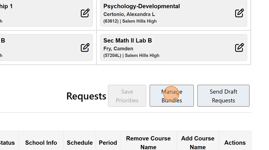 - If your school allows Waitlists, you may create a Bundle of requests, with notes indicating the waitlisted class that group of requests hinge upon. (Read section about Bundles below.)