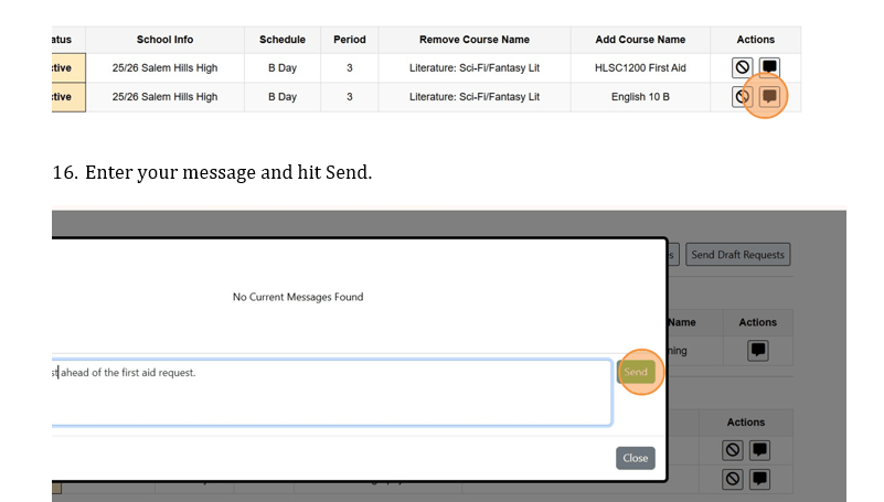 New: Your Requests are in Draft status and will NOT submitted to your counselor until you click the "Send Draft Requests" button, and they become Active Requests.
